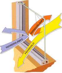 lasia, jolloin lämpöhukka ikkunan läpi pienenee, vedontunne